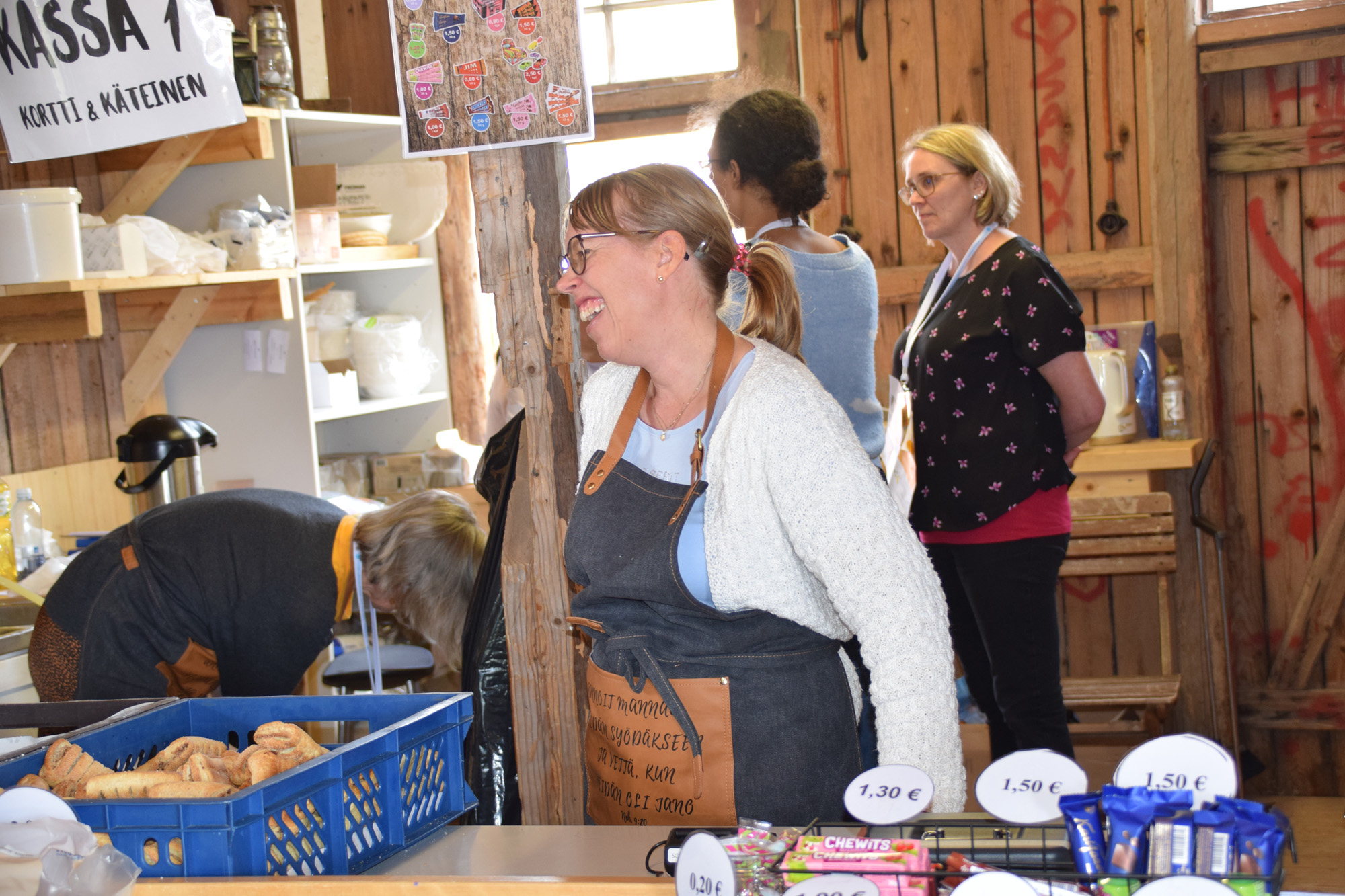 VAPAAEHTOISTYÖN RIEMUA. Café Ilonkorjuussa hymy ei maksanut mitään. KUVA: MARJAANA PERTTULA