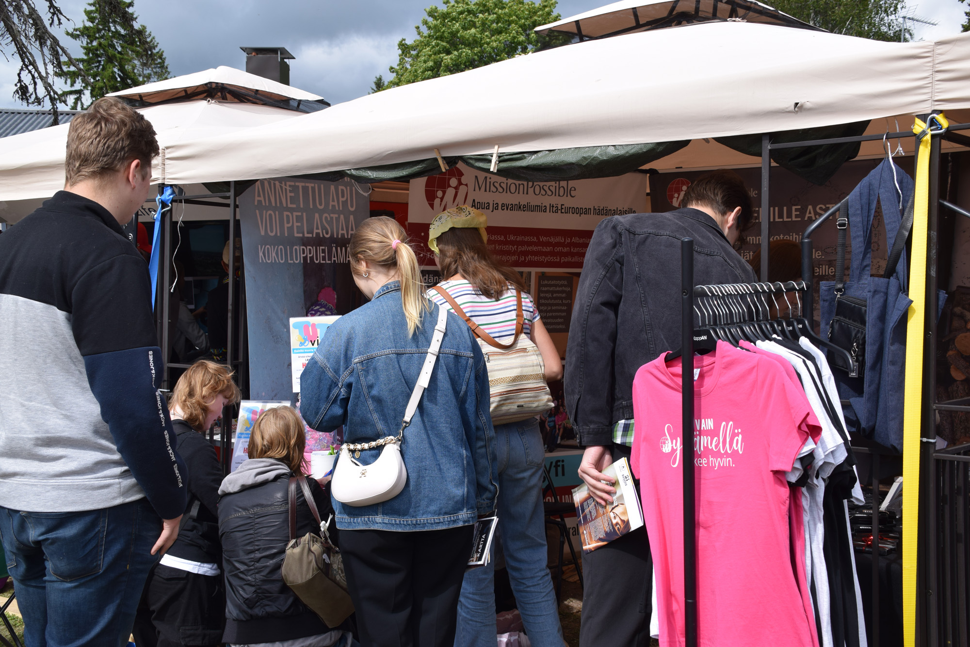 KUHINAA MYYNTIKOJULLA. Erilaiset tavarat meiltä ja muualta kiinnostivat juhlakansaa. KUVA: MARJAANA PERTTULA
