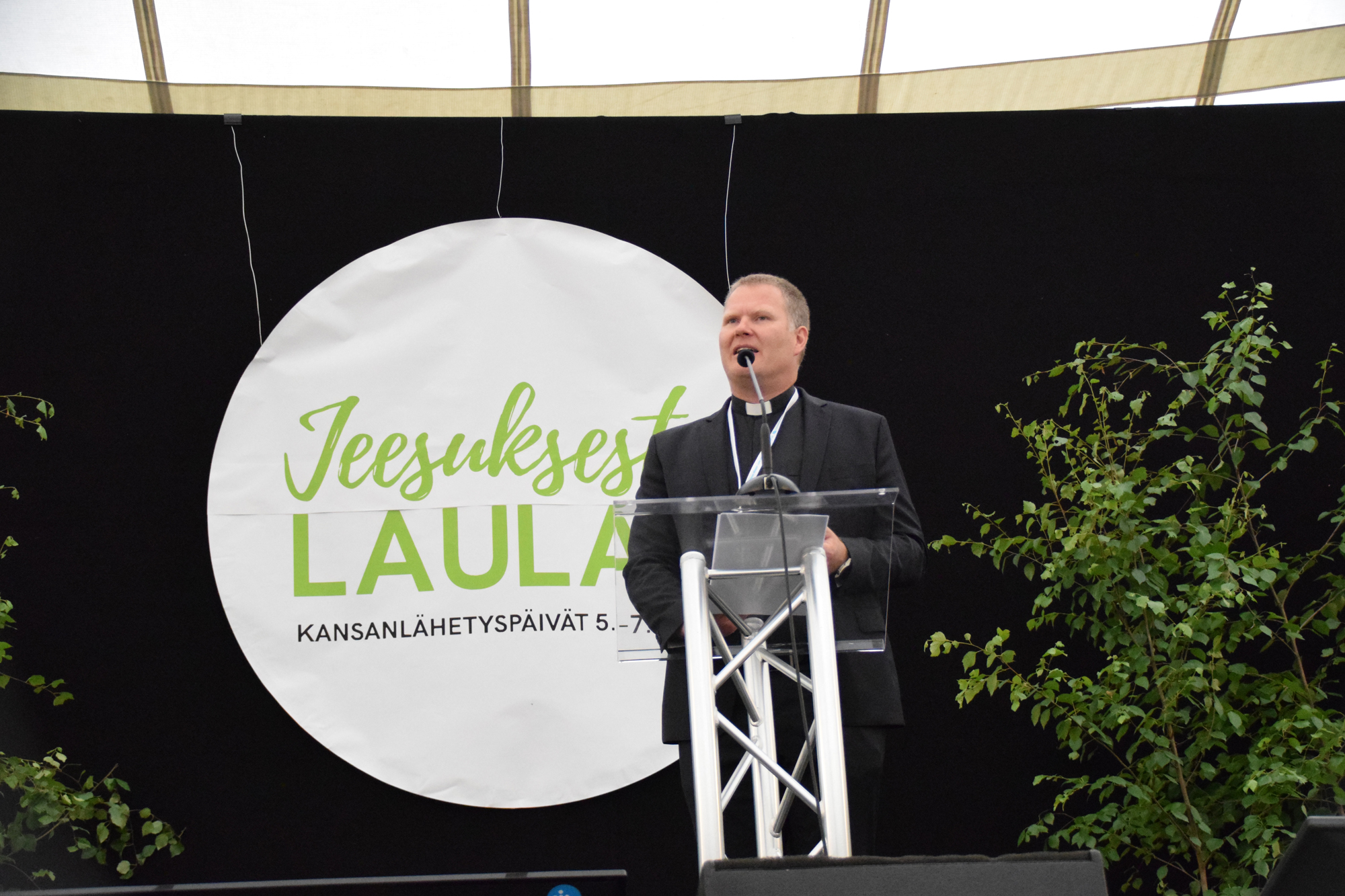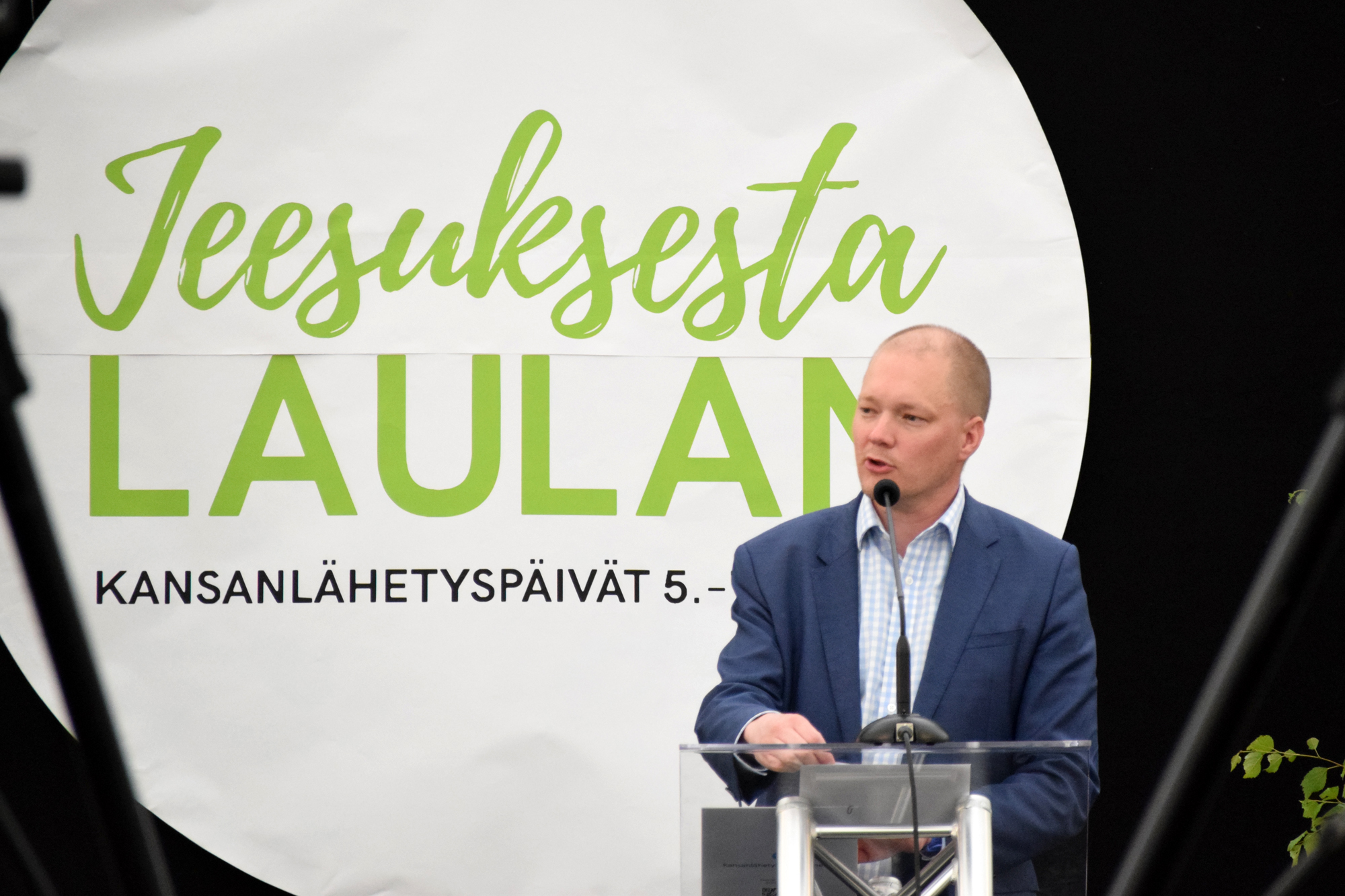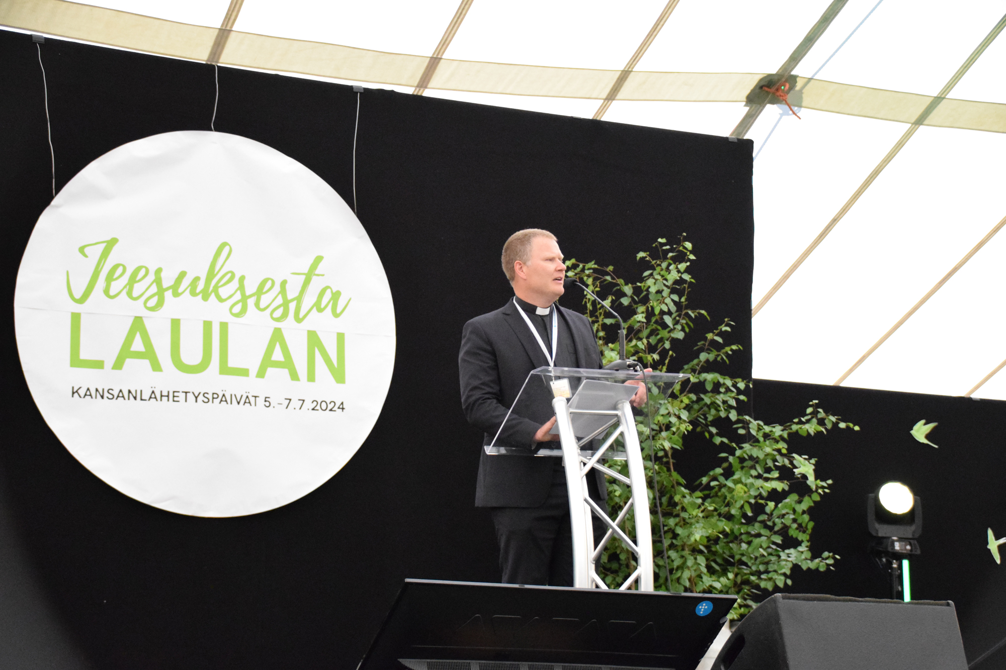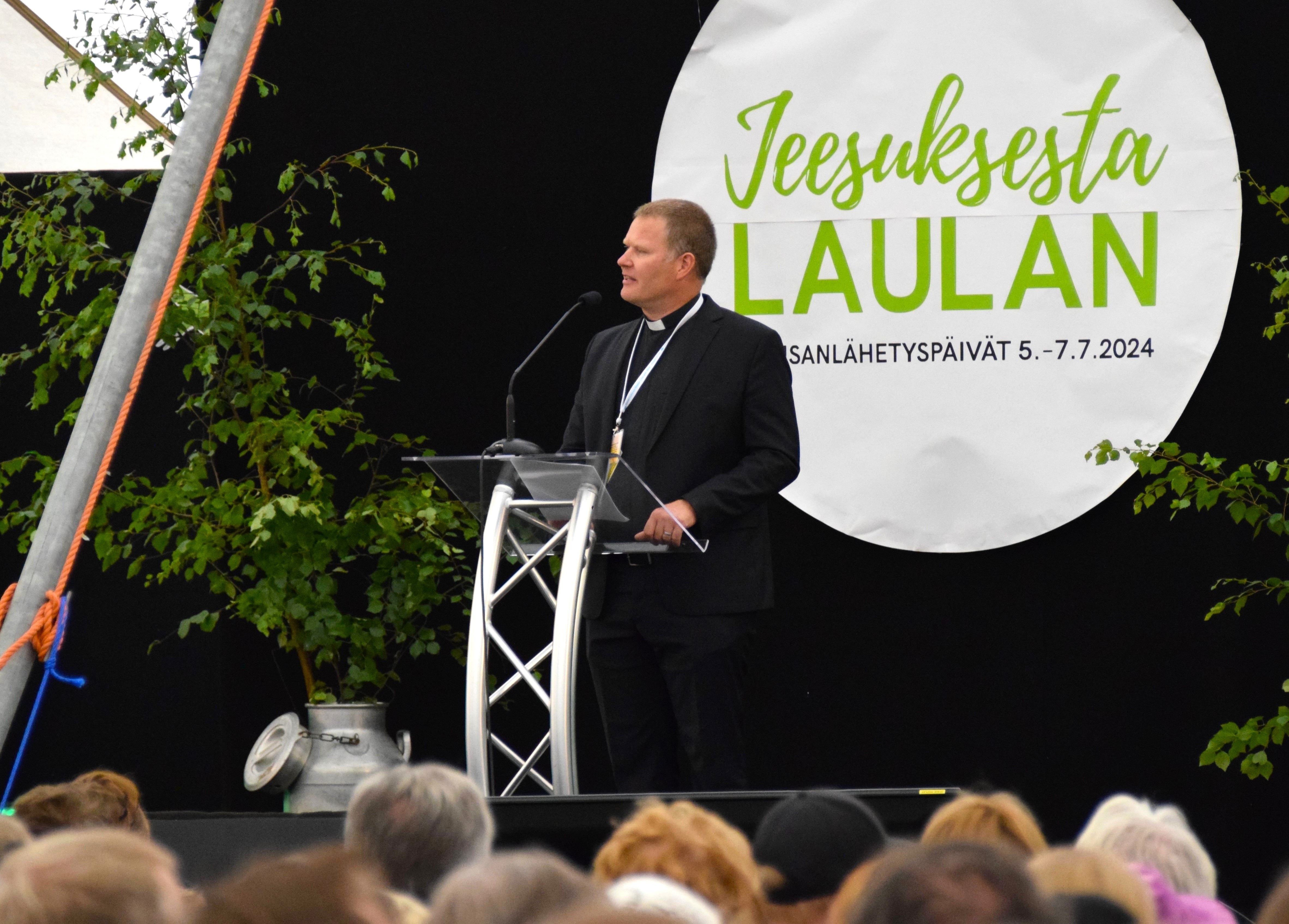 POLTTOPISTEESSÄ. Lähetysjohtaja Daniel Nummela piti ajankohtaisen puheen Kansanlähetyspäivillä lauantaina. KUVA: NAOMI MGAYA