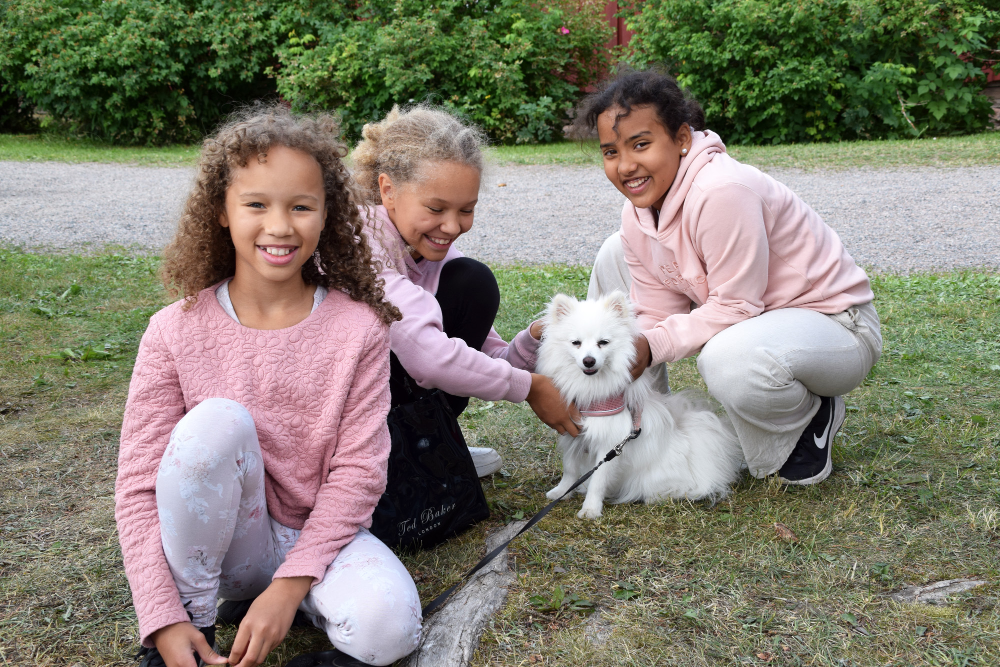 SUVUN NUORTA POLVEA. Odella (vas.) ja Eden Unadike Turusta tapasivat juhlilla serkkunsa Kerina Wolden. Mukana oli myös Gigi-koira. KUVA: MARJAANA PERTTULA