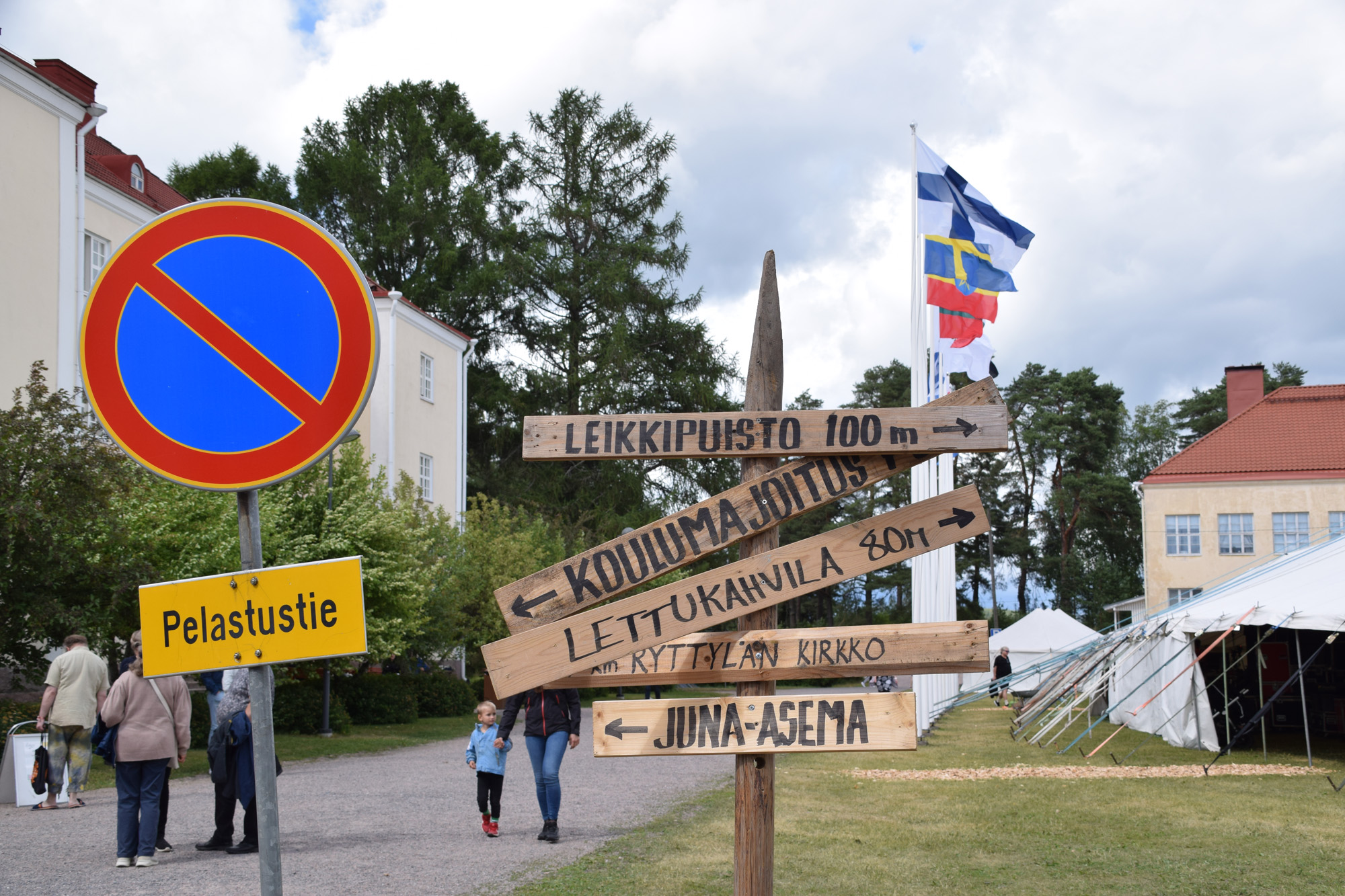 MIHIN TIESI KÄY? Sisäisen suunnantarkistuksen ohella erilaiset ajalliset tienviitat ja kyltit osoittivat tietä Kansanlähetyspäivillä Ryttylän kauniissa maalaismiljöössä. KUVA: MARJAANA PERTTULA