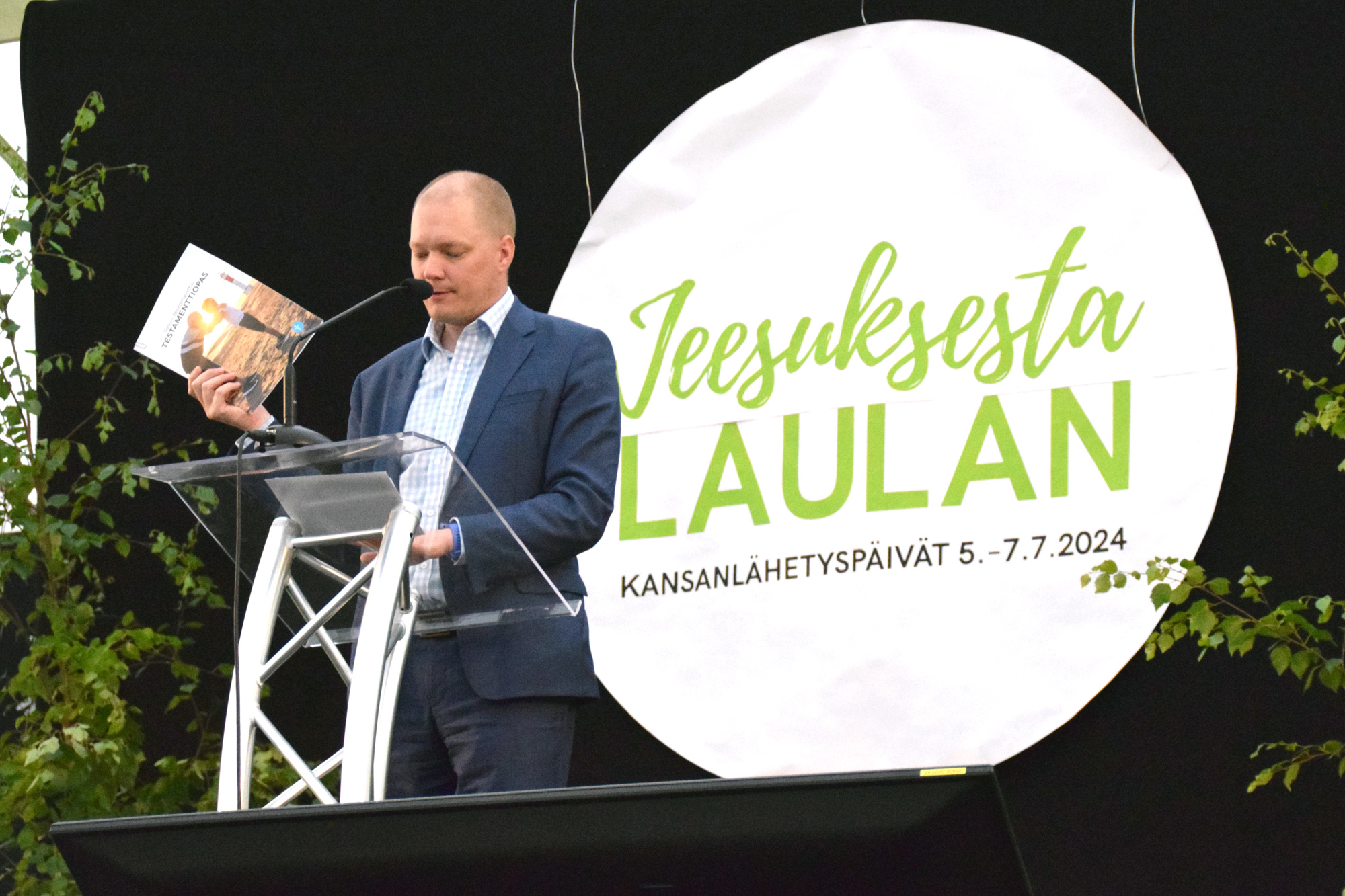 SINUN TESTAMENTTISI. Kansanlähetyksen hallintojohtaja Samuli Virtanen esitteli painotuoretta Testamenttiopasta. KUVA: NAOMI MGAYA