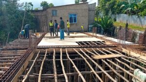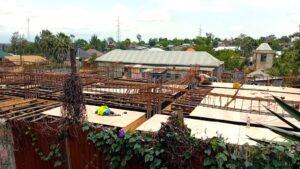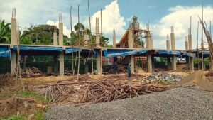 – Rakentaminen on edistynyt todella hyvin, vaikka on ollut kova sadekausi. Työ on tehty ammattitaidolla. Rakennuksen perustukset on tehty hyvin ja niiden päälle on hyvä rakentaa. Tällä hetkellä rakentajat tekevät välipohjan valumuotteja. Sateiden takia valamista täytyy nyt odottaa.